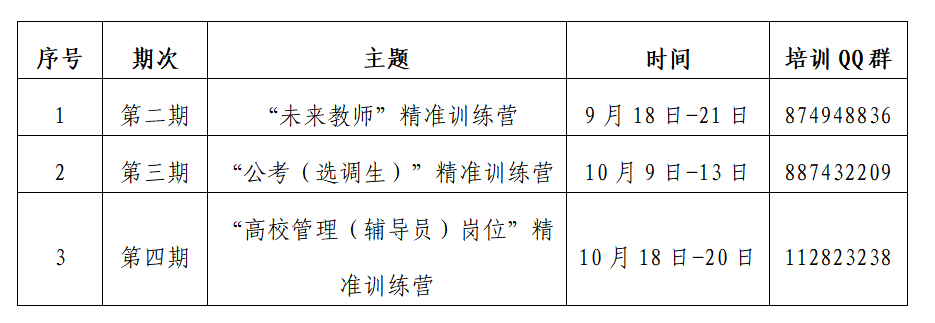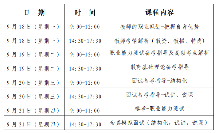 培训面向有意愿从事教师行业,获得国家教师编制或私立中学教师岗位的在校生(含本科生、硕士生和博士生),旨在帮助毕业生掌握教师求职技巧,包括备考内容培训和面试技能等,帮助毕业生切实提升求职竞争力。