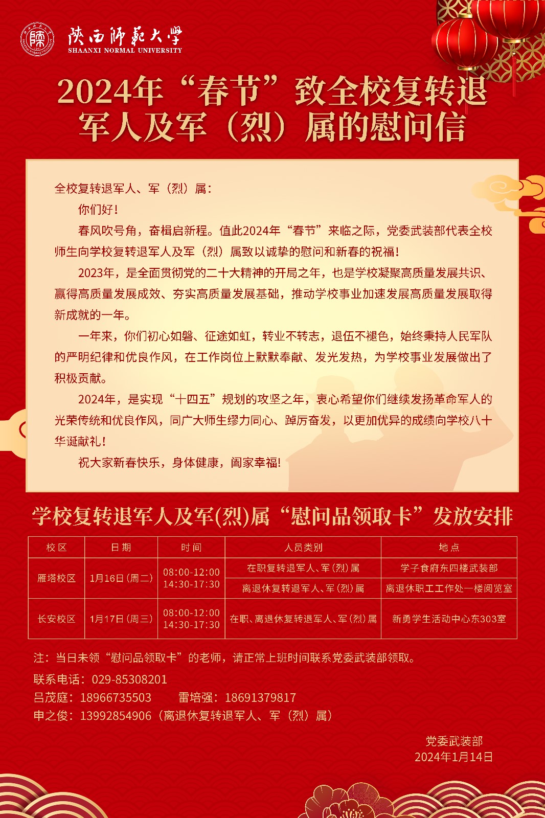 2024年“春节”致全校复转退军人及军(烈)属的慰问信