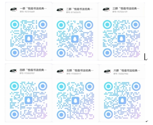 (1)“悦临书法经典,颂赞八秩风华”临摹打卡活动学分认证组QQ群二维码(选择一个群加入即可)
