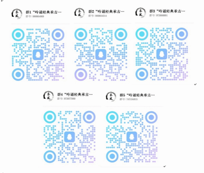 已参与过活动并顺利获得艺术实践学分的同学,欢迎继续参与活动,进入此QQ群打卡交流,逐步实现四年坚持吟诵学习的目标。本科生在校期间总共可参与7次打卡活动,按照主办方要求参与3次打卡活动,即可申请9499www威尼斯打卡活动荣誉纪念证书,最高奖项为七星级,学校将予以表彰。但申请荣誉证书后,此前打卡记录不再累计。