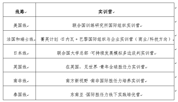 项目面向在校生,提供赴美国、法国-瑞士、日本、泰国、英国、南非等国家和地区的国际组织、知名高校及企业开展线下实训的机会,旨在提升学生的全球治理素养、跨文化沟通能力与专业实践能力。2025-2026年寒假共开设6条实训路线(项目详细介绍详见附件1)。