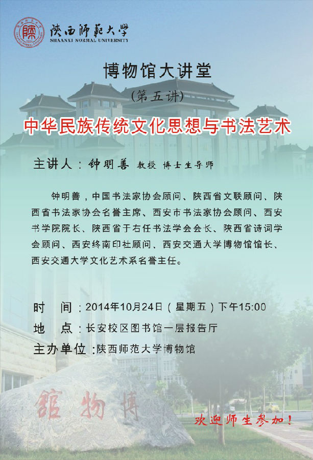 讲座题目:博物馆大讲堂:中华民族传统文化思想与书法艺术