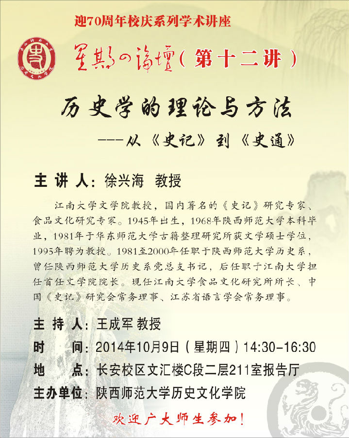 讲座题目:迎70周年校庆系列学术讲座之星期四论坛:历史学的理论与方法