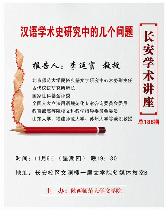 讲座题目:长安学术讲座:汉语学术史研究中的几个问题