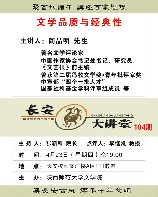讲座题目:文学品质与经典性