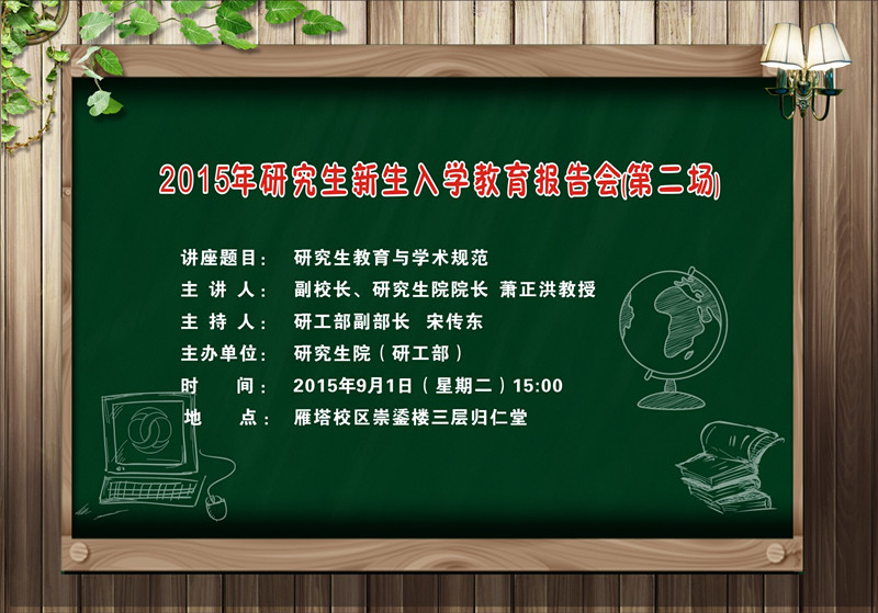 讲座题目:2015年研究生新生入学教育报告会第二场:研究生教育与学术规范