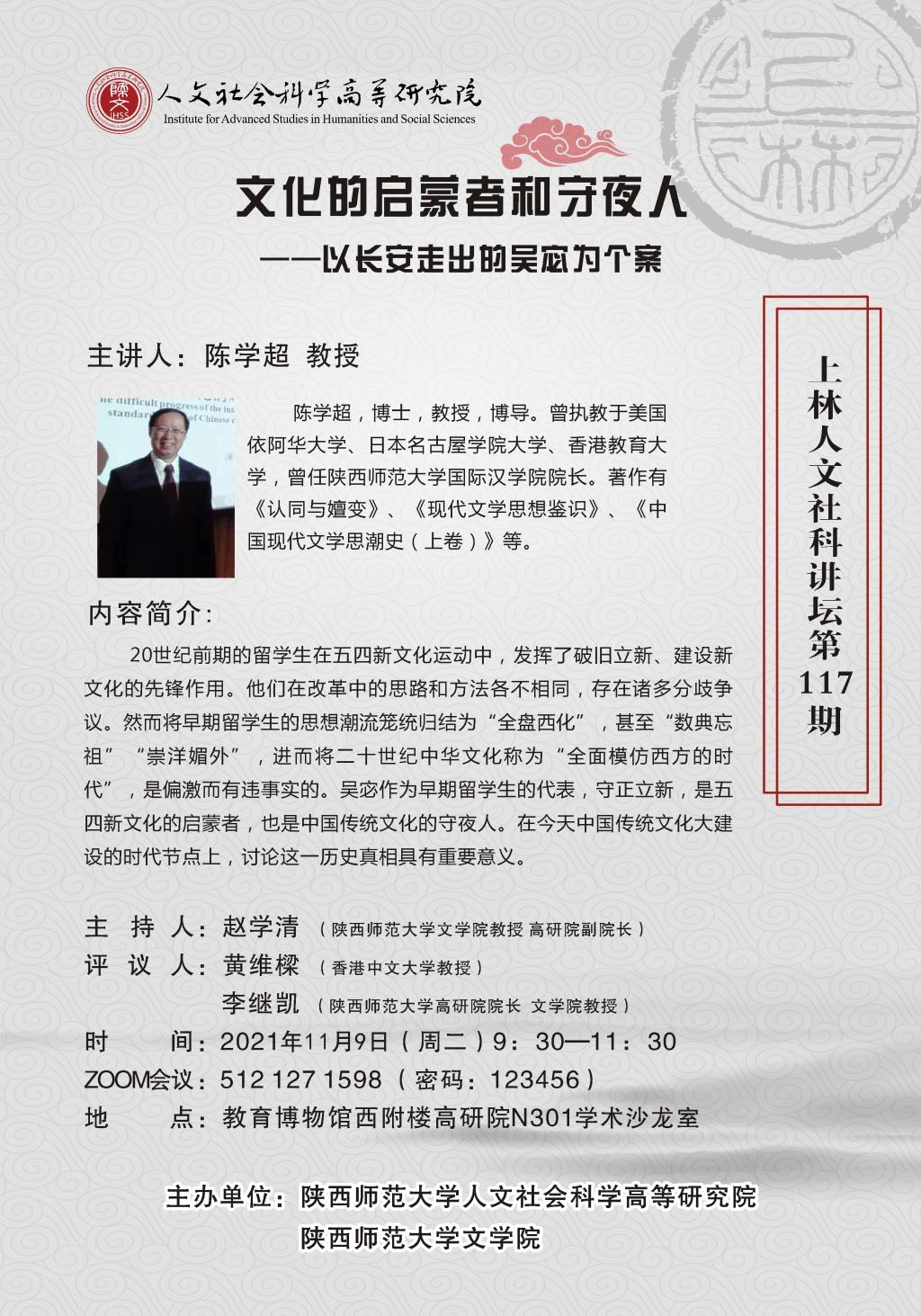 上林人文社科讲坛第117期:文化的启蒙者和守夜人——以长安走出的吴宓为个案