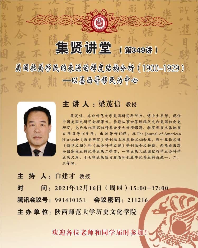 集贤讲堂(第349讲):美国拉美移民的来源的梯度结构分析(1900-1929)——以墨西哥移民为中心