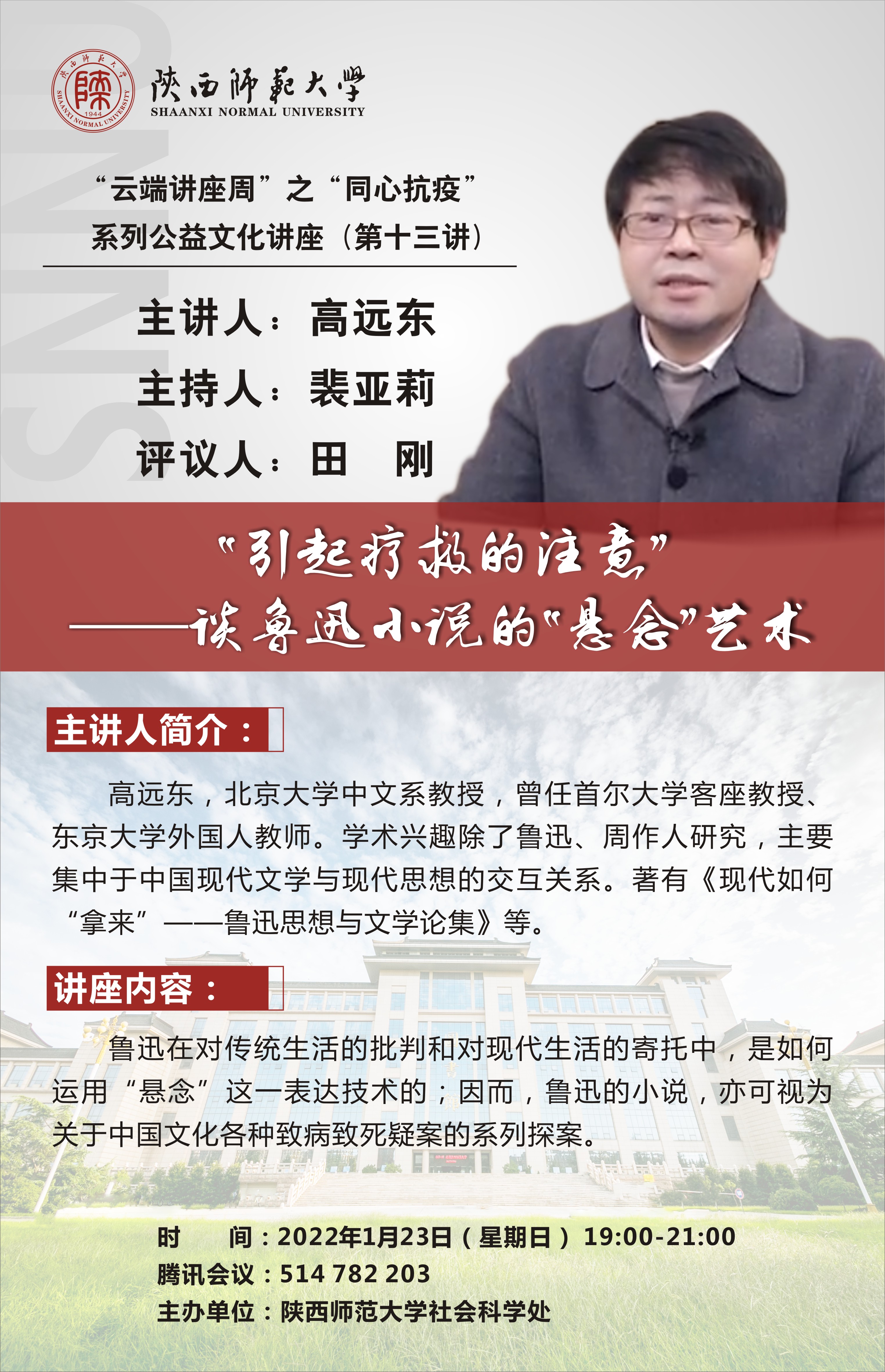 “云端讲座周”之“同心抗疫”系列公益文化讲座(第十三讲):“引起疗救的注意”--谈鲁迅小说的”悬念“艺术