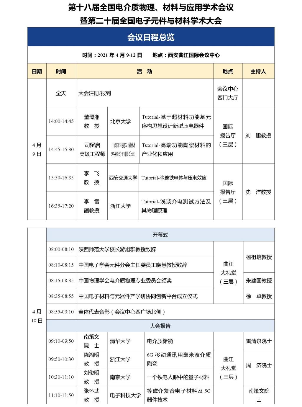 第十八届全国电介质物理、材料与应用学术会议暨第二十届全国电子元件与材料学术大会